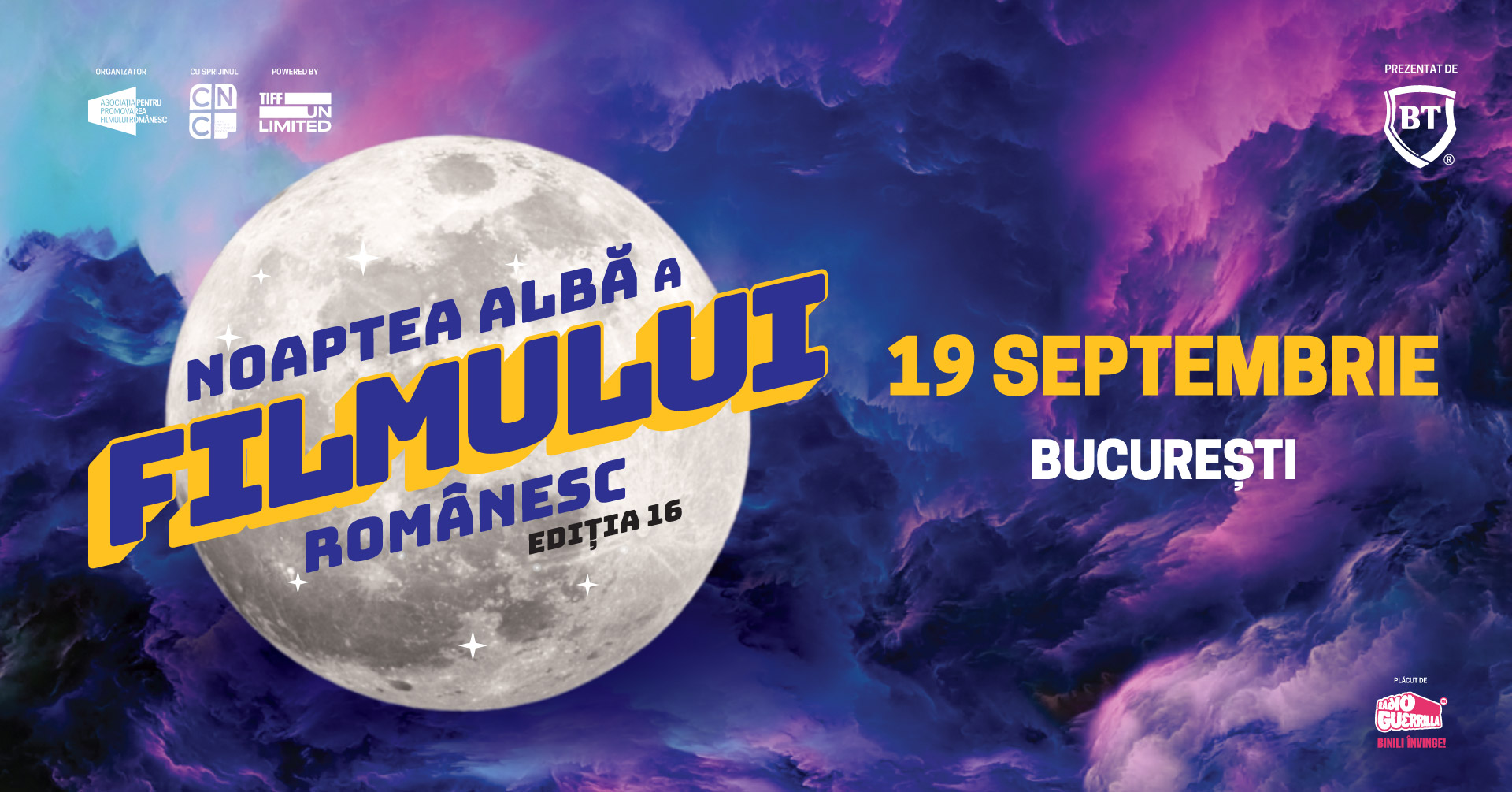 Evenimentul care propune cinefililor o noaptea întreagă de film românesc se întoarce pe 19 septembrie în București și Cluj. Ajunsă la cea de-a 16-a ediție, Noaptea Albă a Filmului Românesc va avea loc în 8 cinematografe și va aduce pe marile ecrane doar producții autohtone.